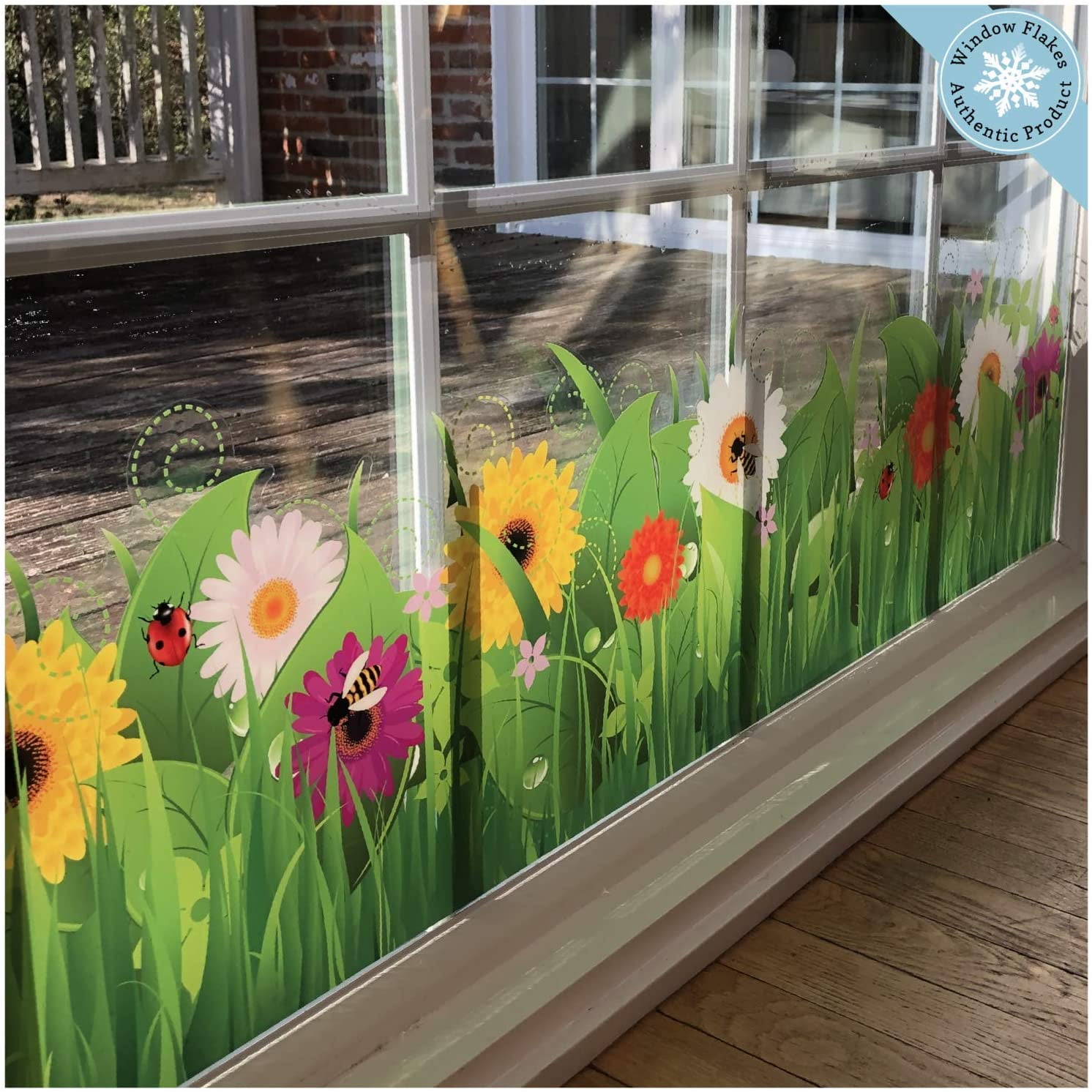 Flower Window Clings Wild Grass With Flowers And Insects Window Border Decal Adhesive Free Spring Decorations Window Stickers Reusable Glass Door Sticker Decals Walmart Com